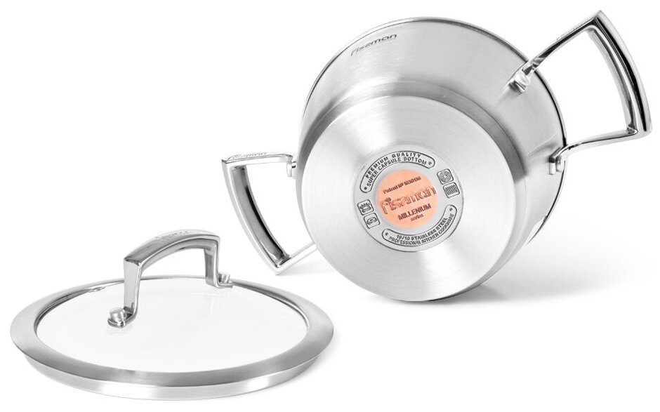 Лучшие цены. Компания FISSMAN ценит своих покупателей и относится к качеству своей продукции с особым вниманием. Посуда серии MILLENIUM сделана из самой безопасной высококачественной нержавеющей стали марки 18/10 (INOX304), обладает жаростойкостью и коррозийной прочностью, очень легка в уходе. Многослойное капсульное дно обеспечивает равномерный нагрев и распределение тепла благодаря алюминиевой прослойке, раскрывая вкусовые качества блюда и сохраняя все полезные свойства продуктов, а индукционный слой делает посуду. Магазины в вашем городе.