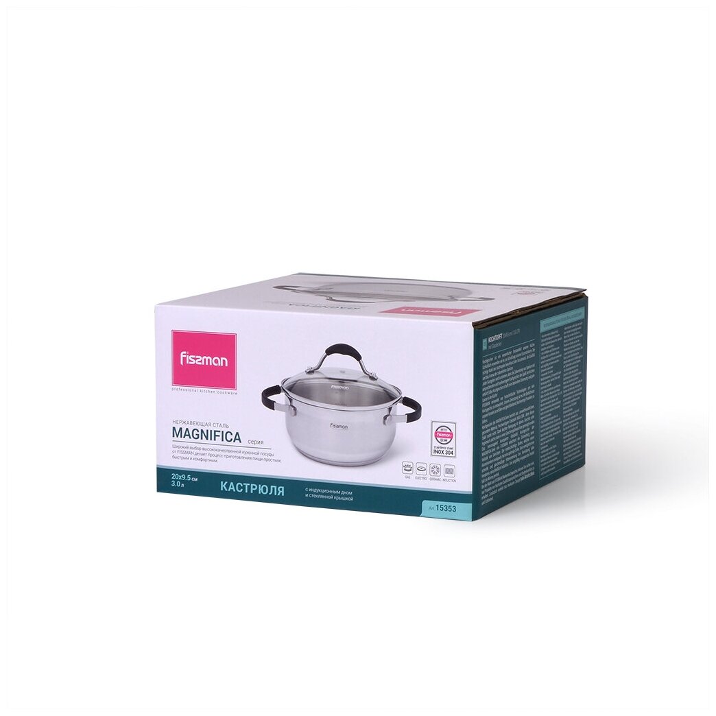 Лучшие цены. Компания FISSMAN ценит своих покупателей и относится к качеству своей продукции с особым вниманием. Посуда серии MAGNIFICA сделана из самой безопасной высококачественной нержавеющей стали марки 18/10 (INOX304), обладает коррозийной стойкостью, очень легка в уходе. Многослойное капсульное дно обеспечивает равномерный нагрев и распределение тепла благодаря алюминиевой прослойке, раскрывая вкусовые качества блюда и сохраняя все полезные свойства продуктов, а индукционный слой делает посуду универсальной для. Магазины в вашем городе.