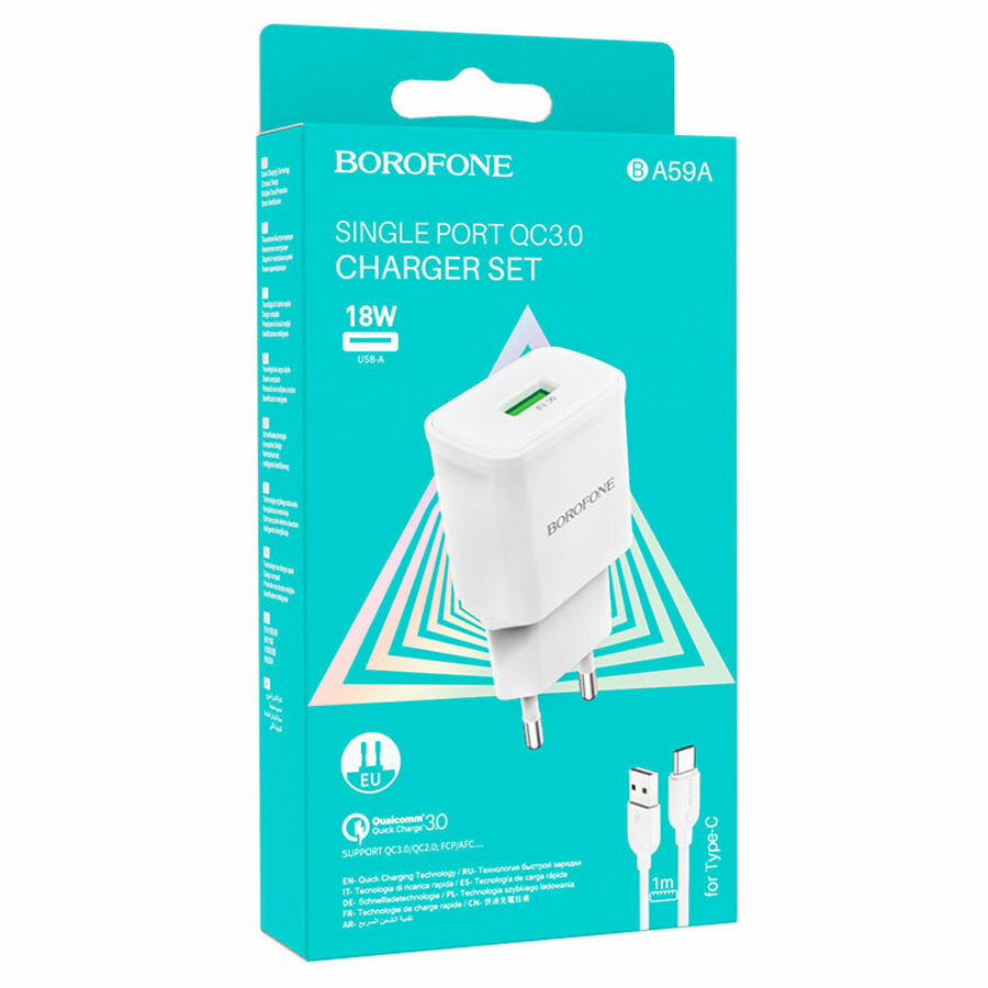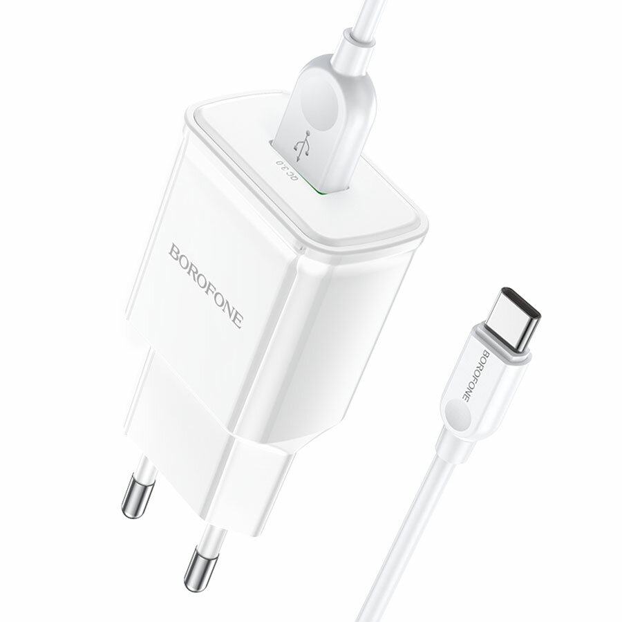 Зарядки для гаджетов Зарядное устройство Borofone BA59A Heavenly 2xUSB 5V 3A QC3.0 + кабель Type-C White 6974443380217