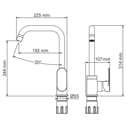 | Высота смесителя | 314 мм |