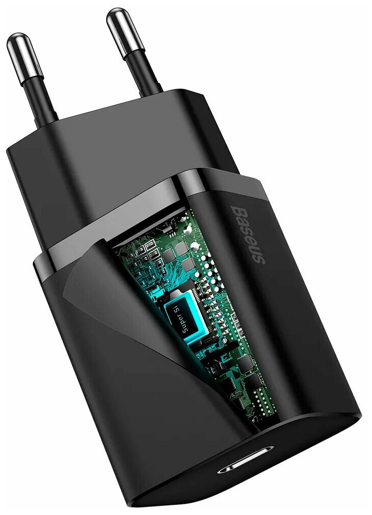 Сетевое зарядное устройство Baseus Super Si Quick Charger 1C 20W EU Black, черное