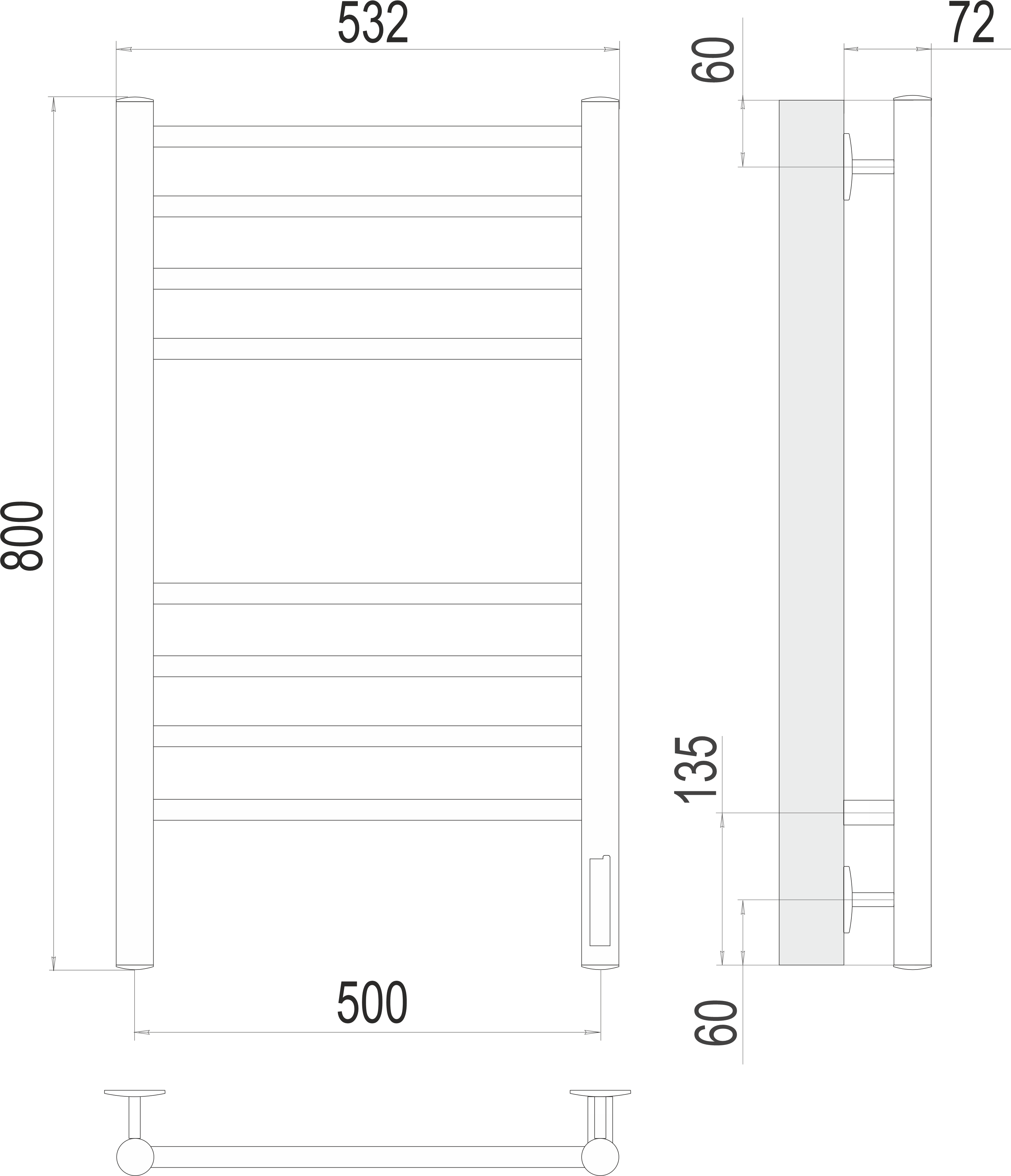 Лучшие цены. Тип полотенцесушителя: Электрический Серия: Электрика эконом Форма: Лесенка Высота (мм): 800 Ширина (мм): 532 Межосевое расстояние (мм): 500 Гарантия: 2 года. Магазины в вашем городе.