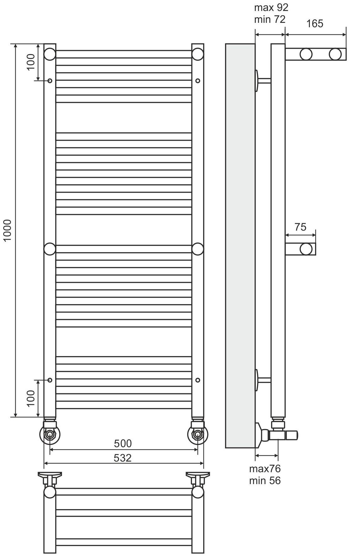 Полотенцесушитель водяной TERMINUS Аврора с 2-мя/п П20 500х1000 в комплекте с угловыми соединениями ГхШ 3/4 на 1/2