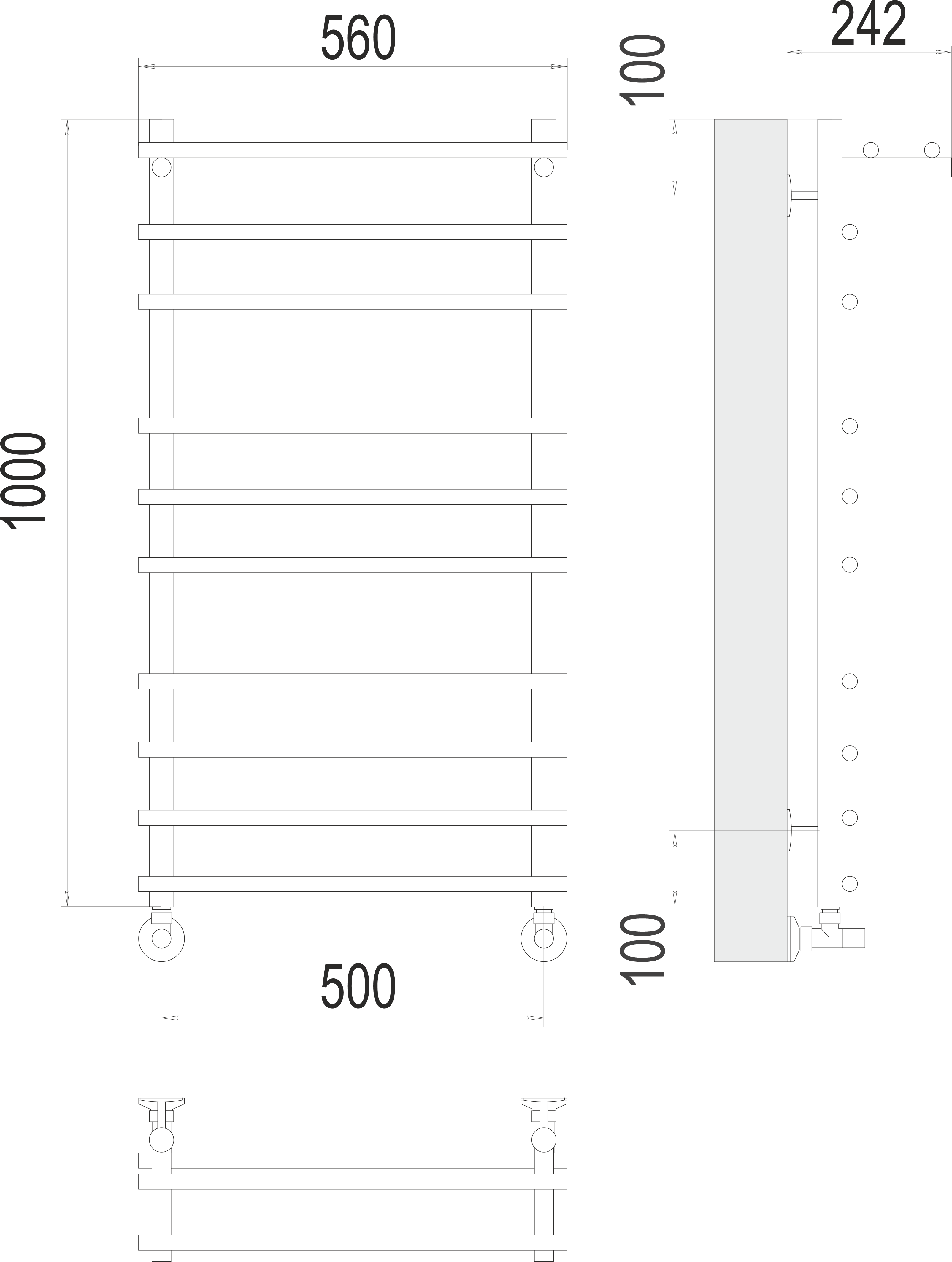 Полотенцесушитель водяной TERMINUS Ватра с/п П10 500х1000 в комплекте с угловыми соединениями ГхШ 3/4 на 1/2