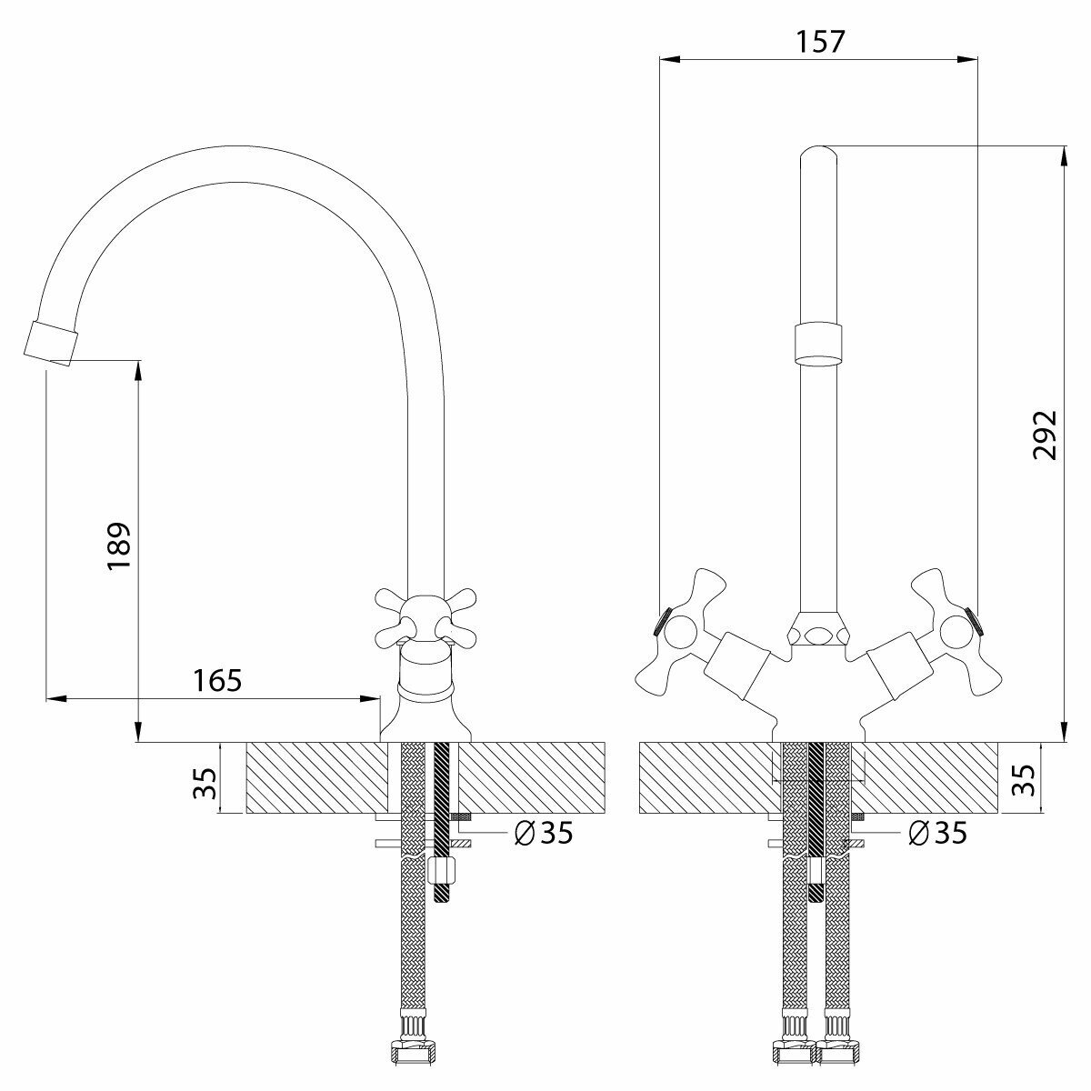 Смеситель двухзахватный для кухни с высоким поворотным изливом 260мм, H02-72R с резин. кран-буксами