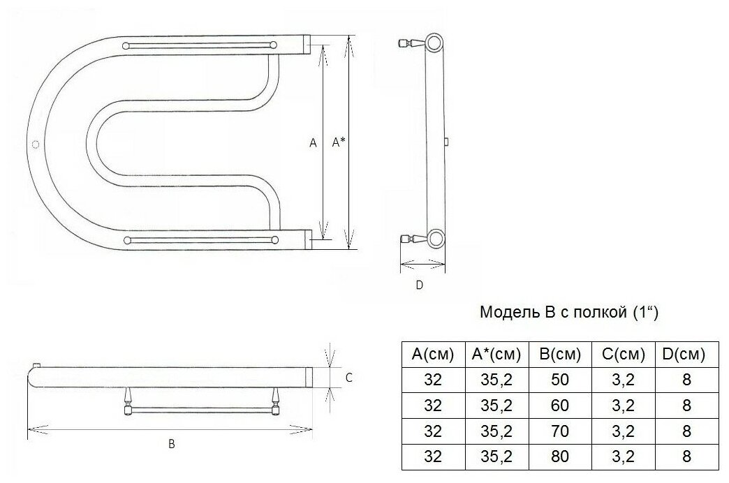 Полотенцесушитель Полотенцесушитель водяной Двин B 32/50 1"-1/2" С полкой К0, Полированный 4627085923138