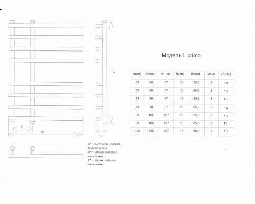 Полотенцесушители Полотенцесушитель двин L Primo 60/15 Водяной полн.ширина 55 см 1"-3/4"-1/2" К3 Полированный (4627085980803)
