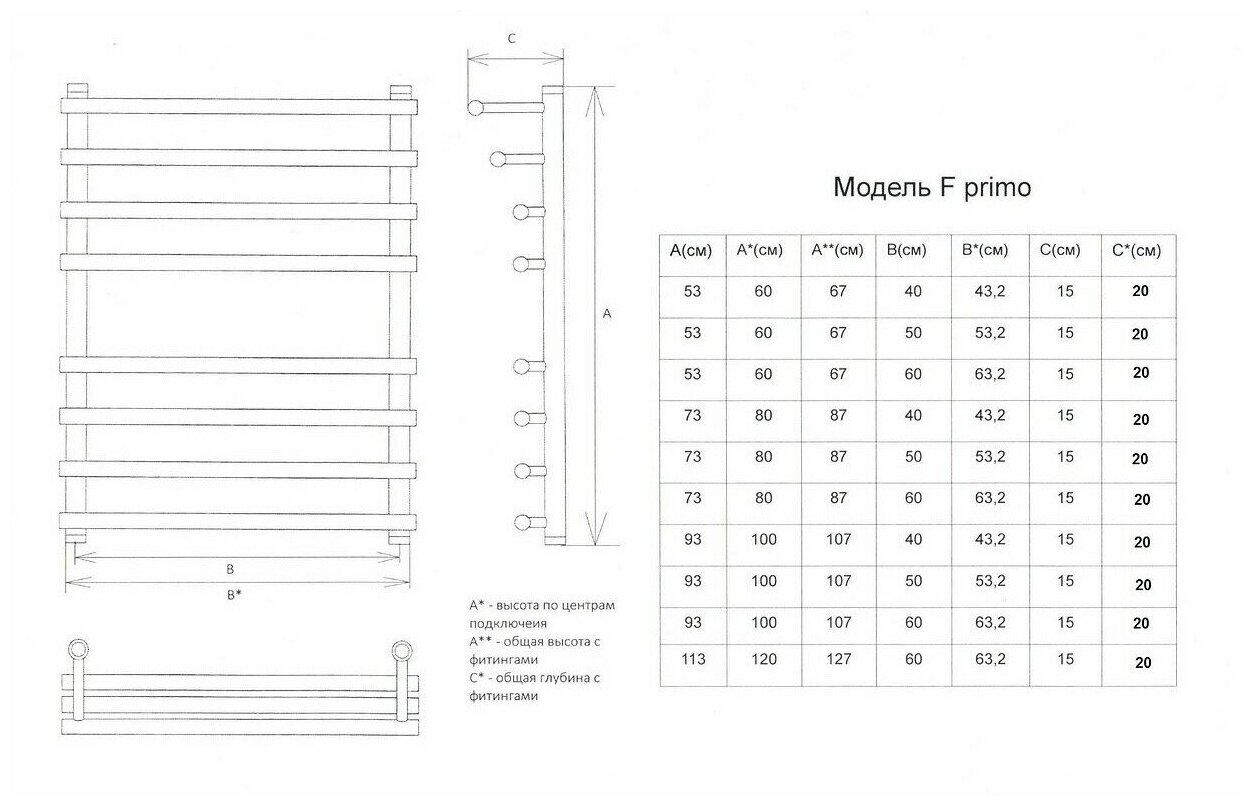 Полотенцесушитель двин F primo 80/50 1"-3/4"-1/2" Универсальный, К1
