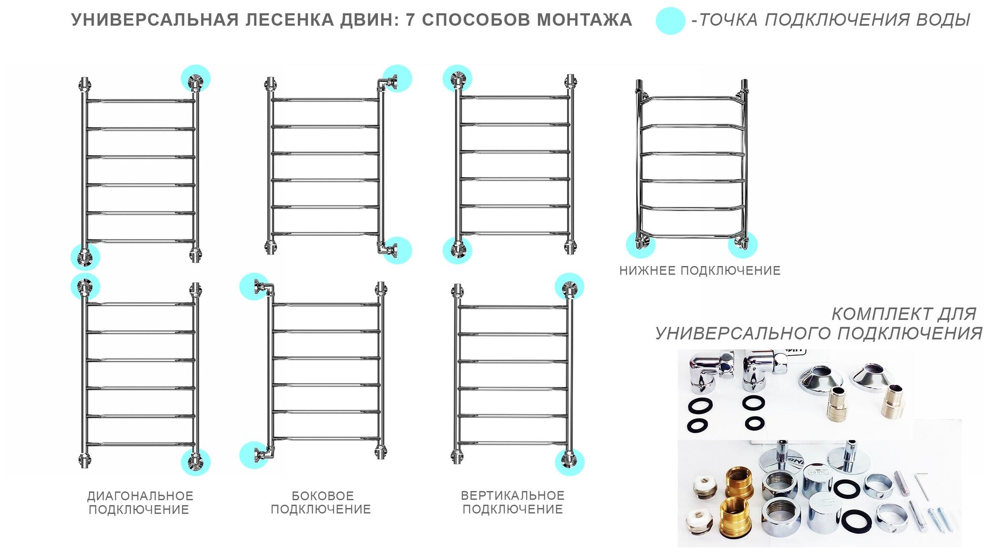 Полотенцесушитель универсальный Двин "F" primo 100*60, 1"-1/2
