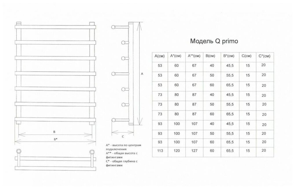 Полотенцесушитель Полотенцесушитель DVEEN Q Primo 800*500 мм