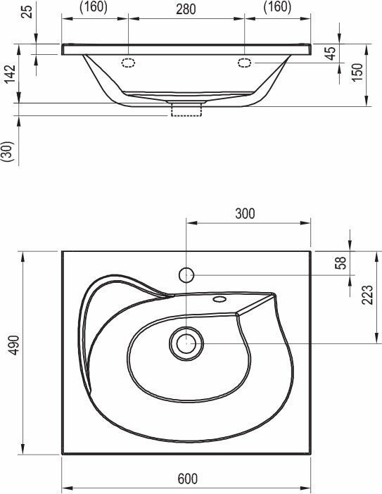 Умывальник RAVAK ROSA II (600х490х150) с отверстием под смеситель