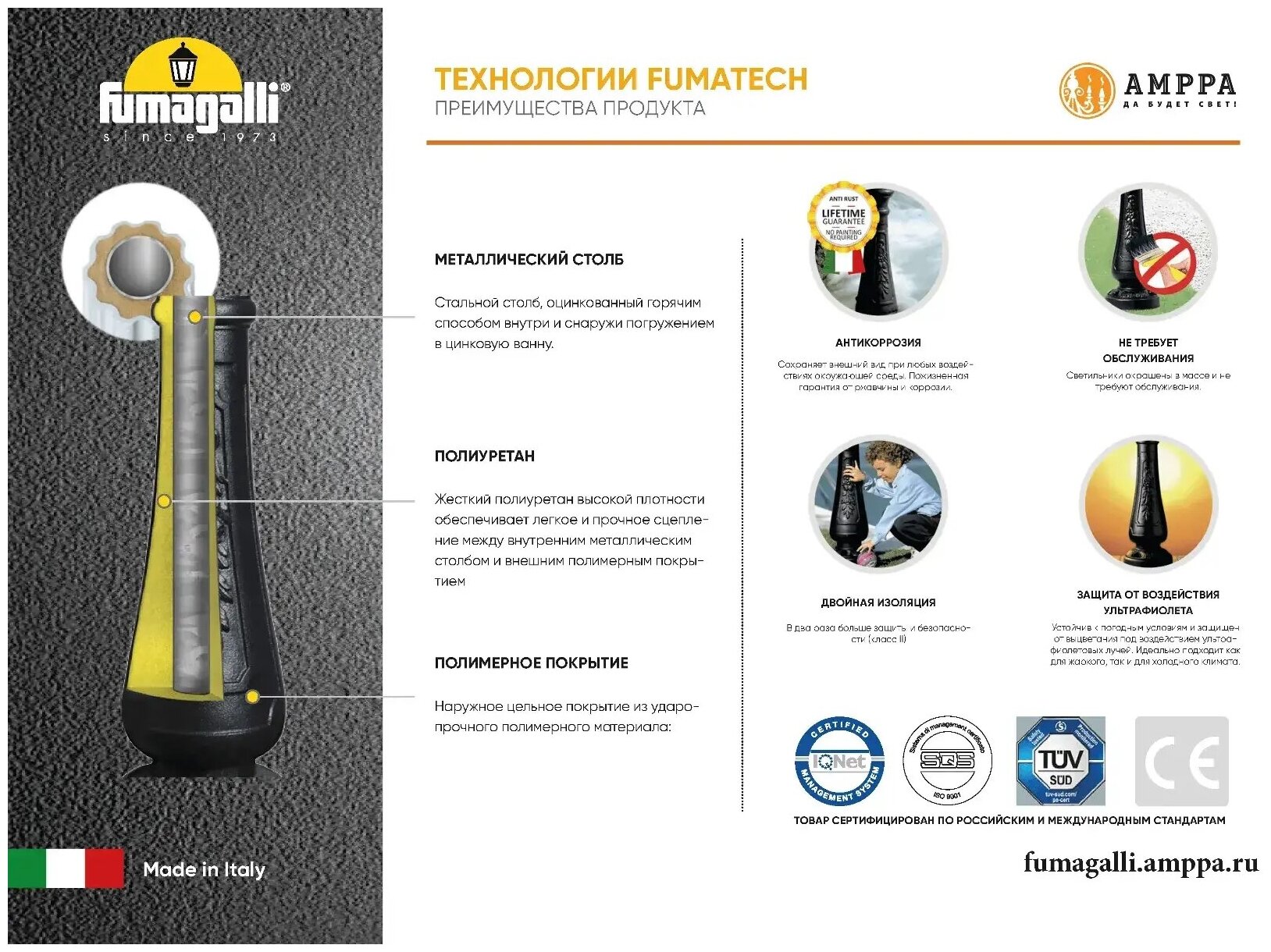 Лучшие цены. Парковый фонарь FUMAGALLI большого размера серии GLOBE 400, модель TABOR OFIR/GLOBE 400 2L. Парковый фонарь с 2 светильниками - шарами большого размера, на консолях OFIR среднего размера, установленных на классическом столбе TABOR высотой 3,0 м (+высота фонарей на кронштейнах). Изготовлен в Италии, по уникальным технологиям "FUMATECH" из современного композитного полимера RESIN. Этот материал в 5 раз прочнее силумина, не ржавеет, не окисляется, не выгорает на солнце, его не нужно красить. Магазины в вашем городе.