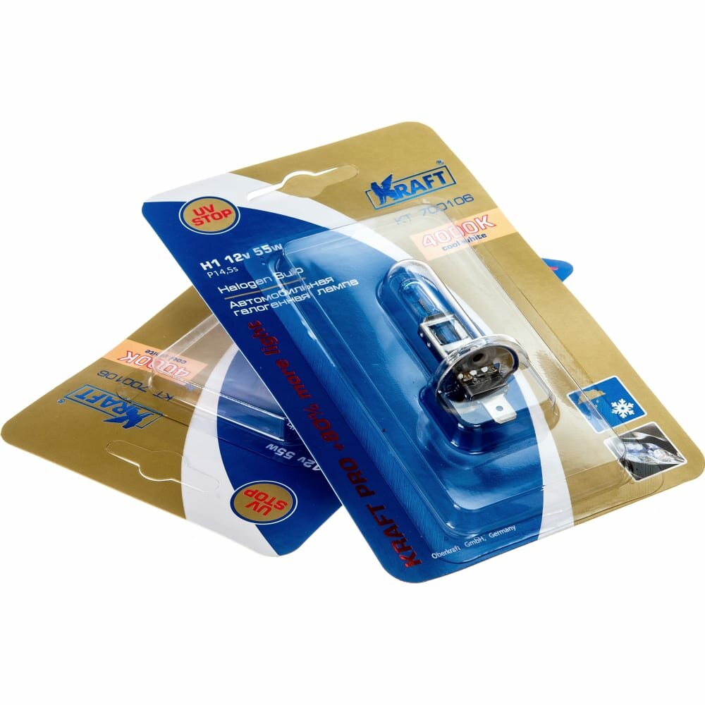 Автолампа Комплект автоламп Н1 12v 55w (P14,5s) Kraft Pro +80% more light (2 шт)