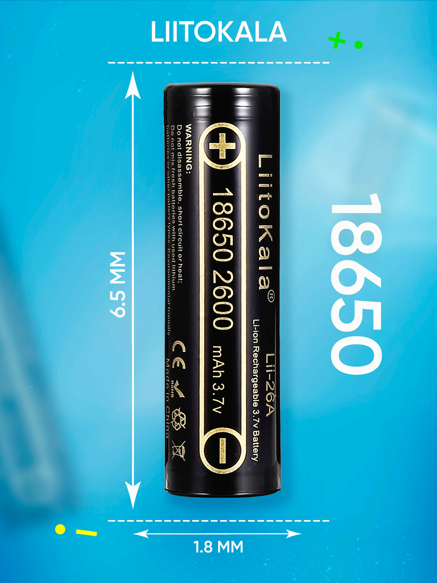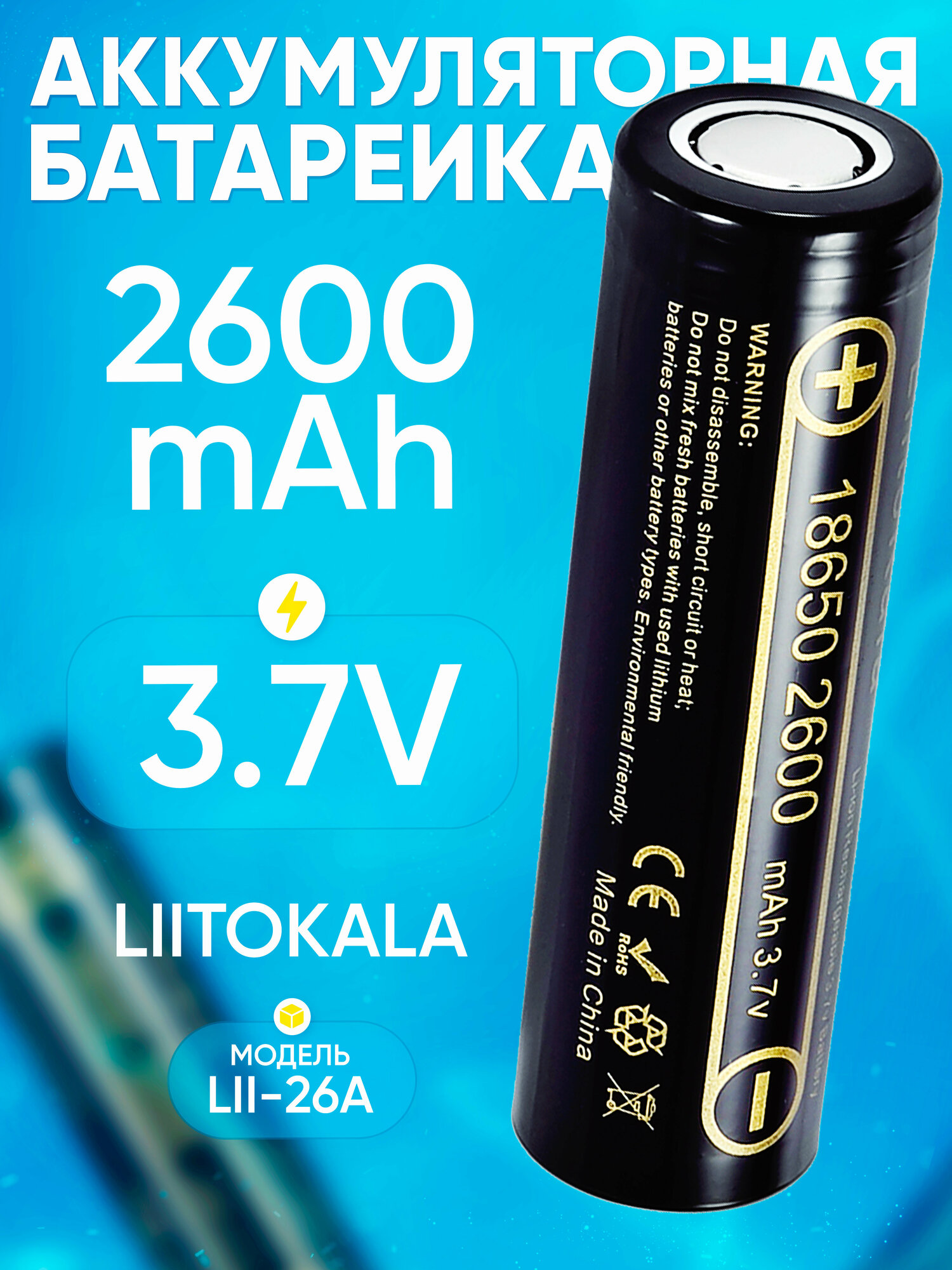 Аккумуляторы и батарейки Аккумулятор LiitoKala Lii-26A 18650 2600mAh