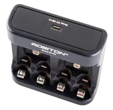 Лучшие цены. Автоматическое зарядное устройство ROBITON Smart4 9V Подходит для 2-4 аккумуляторов типоразмера AA, AAA и 1-2 аккумуляторов типоразмера 9В «Крона» Имеет LED индикацию Работает от любого USB-порта 5В через шнур USB-Micro-USB (в комплекте). Магазины в вашем городе.