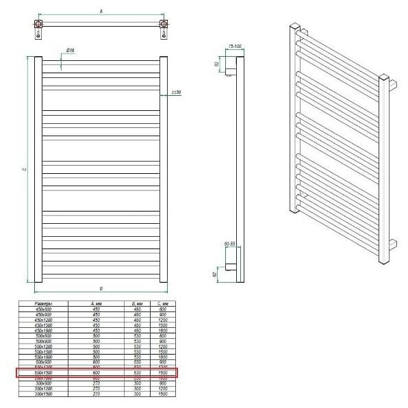 | Габариты (ШхВхГ) | 630x1500 мм / вес — 16.2 кг / |
