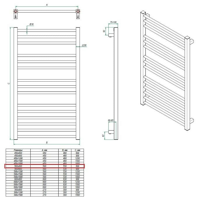 Лучшие цены. Grota Classic 530x600 водяной полотенцесушитель из нержавеющей стали. Магазины в вашем городе.