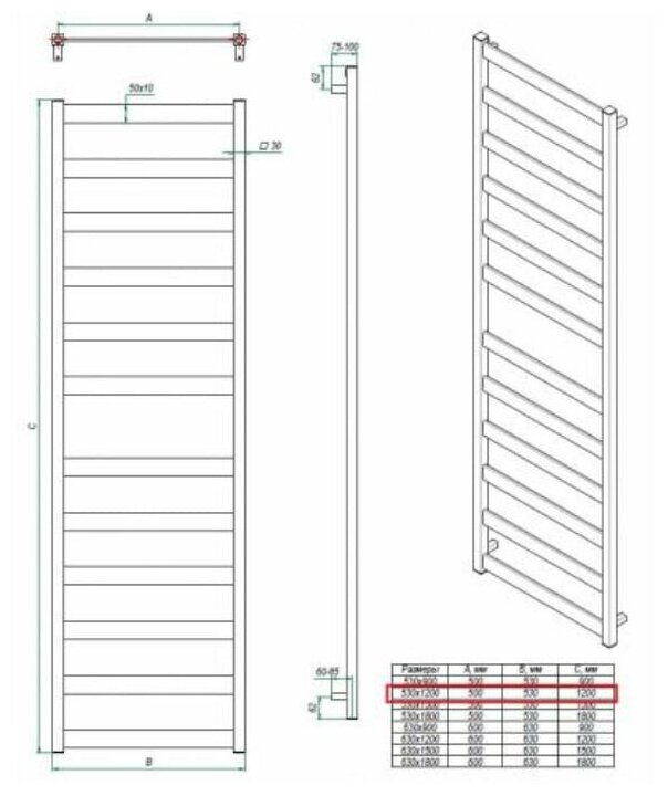 | Габариты (ШхВхГ) | 530x1500x100 мм / вес — 10.3 кг / |