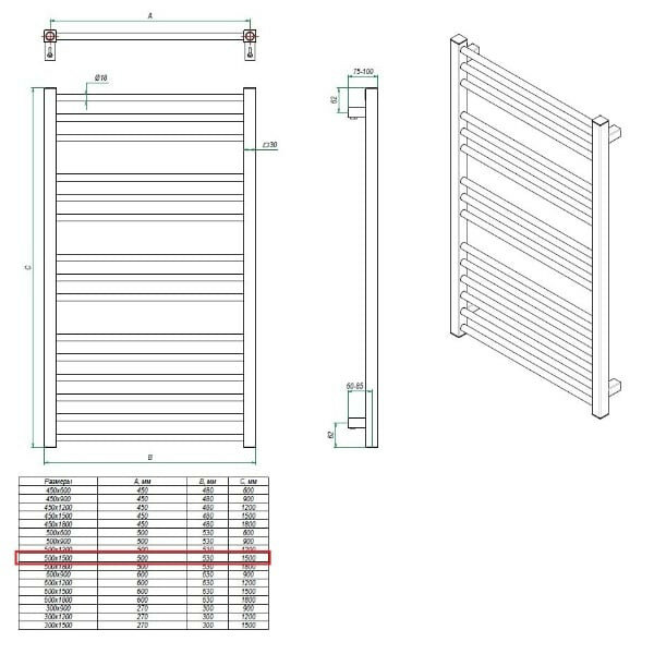 | Габариты (ШхВхГ) | 530x1500 мм / вес — 11.4 кг / |
