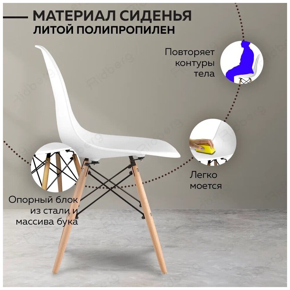 Лучшие цены. RIDBERG DSW EAMES представляет собой удобный и прочный стул, который украсит как квартиру или дом, так и офис или кафе. Модель отличается минималистичным дизайном и глубокой посадкой с поддерживающей спинкой. В комплекте поставляется два стула. Дизайн Сиденье RIDBERG DSW EAMES выполнено из прочного литого полипропилена, а опорный блок сочетает в себе сталь и массив бука. Такая конструкция позволяет выдерживать до 100 кг нагрузки. Магазины в вашем городе.