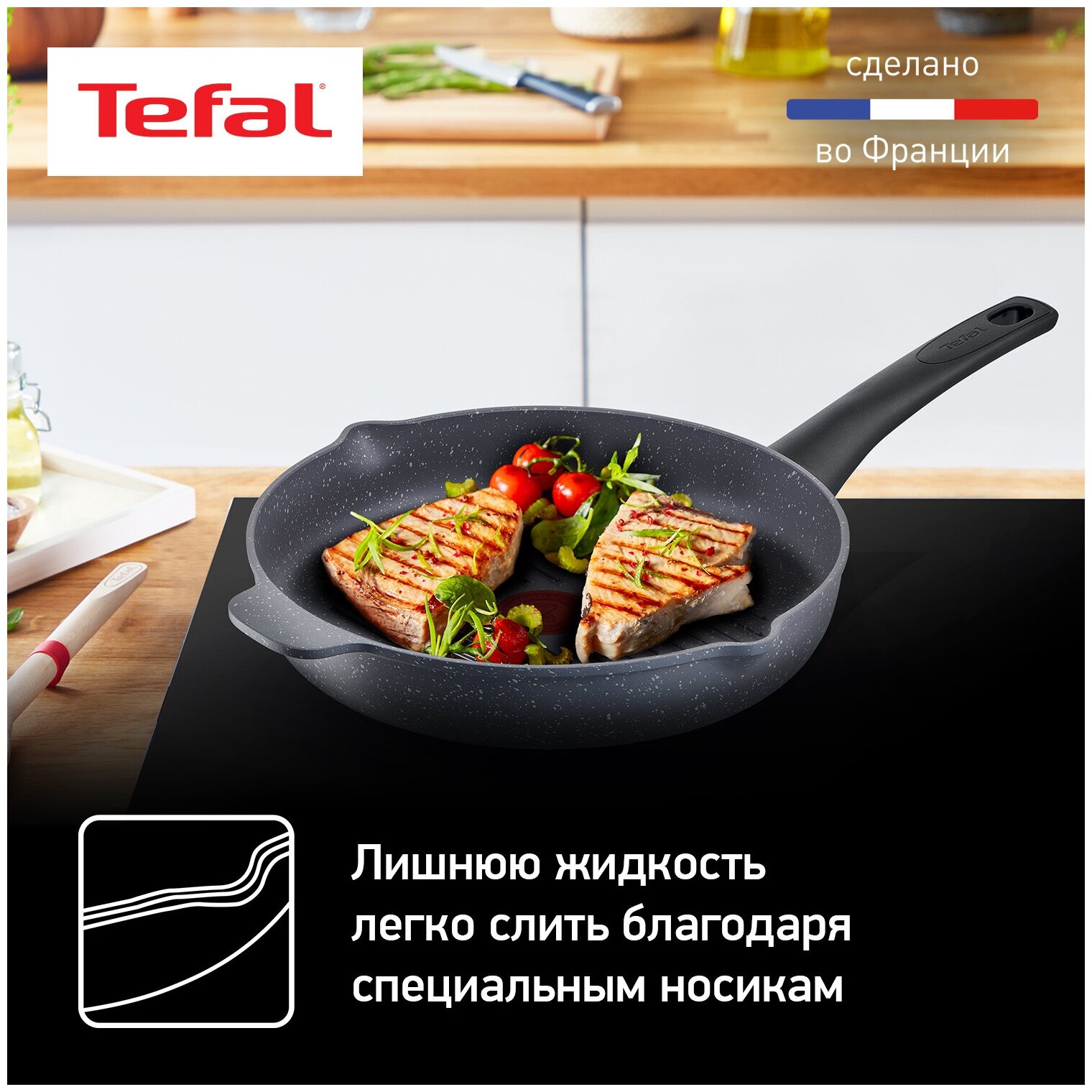 Лучшие цены. Круглая cковорода-гриль Tefal Natural ON E2444074 имеет диаметр 26 см. К ключевым особенностям можно отнести: 1) Наличие индикатора Thermo-Signal, который показывает, когда посуда нагрелась до подходящей температуры и можно начинать готовить; 2)Материал: алюминий; 3) Материал ручки: бакелит; 4) Внутреннее покрытие: антипригарное Mineralia+; 5) Внешнее покрытие: антипригарное 6) Совместимо со всеми видами плит, включая индукцию; 7). Магазины в вашем городе.