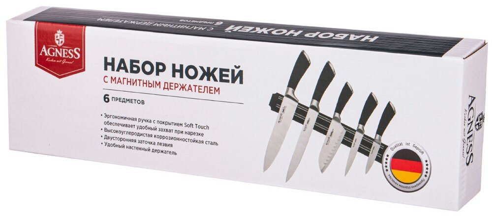 Набор ножей Agness, 6 предметов, с магнитным держателем, нержавеющая сталь (911-006)