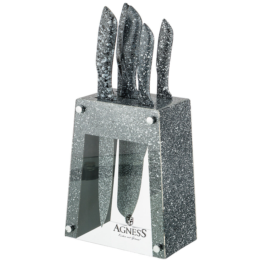 Лучшие цены. Нож - главный инструмент на кухне, а вернее ножи, т.к. даже самый лучший нож не сможет справиться со всем многообразием задач. Выбирая набор ножей AGNESS - Вы приобретаете комплект самых необходимых и чаще всего используемых ножей. Преимущества ножей AGNESS: ? Эргономичная ручка с покрытием Soft Touch для удобной нарезки ? Лезвие из высокоуглеродистой коррозионной стали ? 2-х стороняя заточка лезвия ? Стильный дизайн. Магазины в вашем городе.