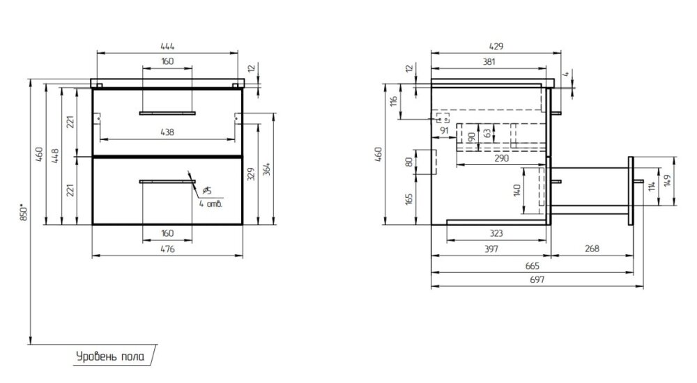 | Габариты (ШхВхГ) | 79.4x46x47 см (без учета умывальника) |