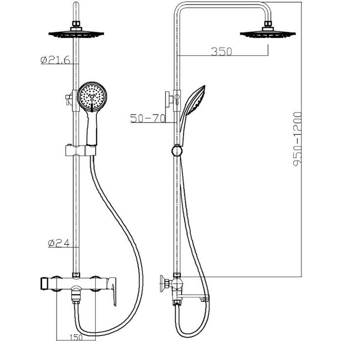 | Комплектация | ручной душ (душевая лейка) / верхний душ (тропический) / смеситель / стойка / штанга / душевой шланг / крепление ручного душа |
