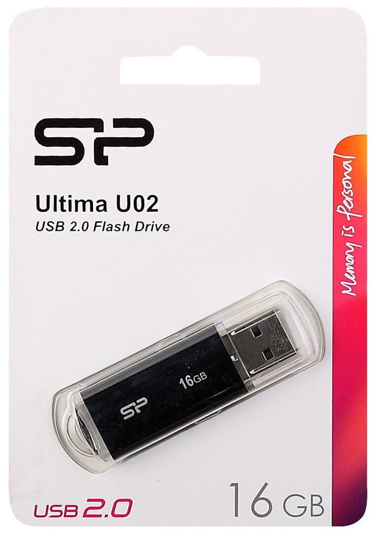Флеш-накопитель Silicon Power 16GB Ultima U02 USB 2.0 черный (sp016gbuf2u02v1k)