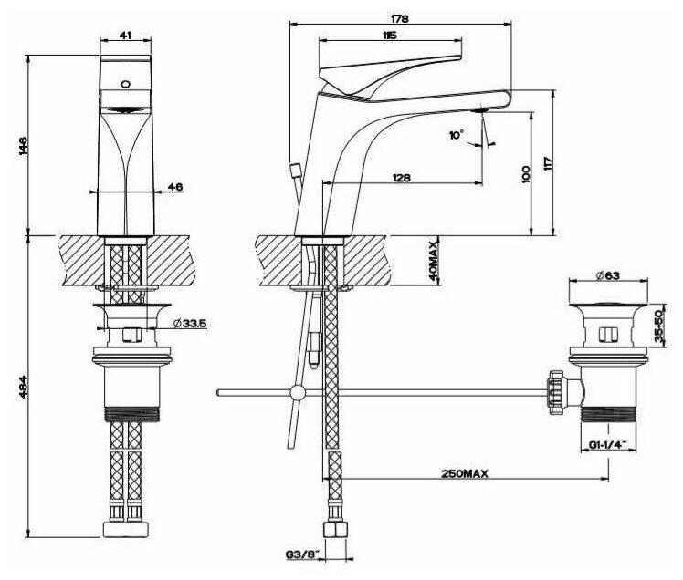 Gessi 49001-031 Via Solferino Смеситель для раковины, с донным клапаном, хром