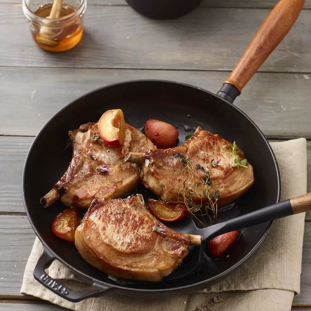 Сковорода Staub с деревянной ручкой 28 см, черная (12302823)