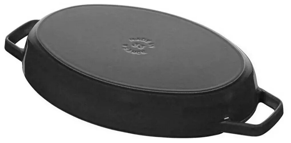 Сковорода овальная для рыбы Staub Specials, 33 см, с чугунной крышкой, черная