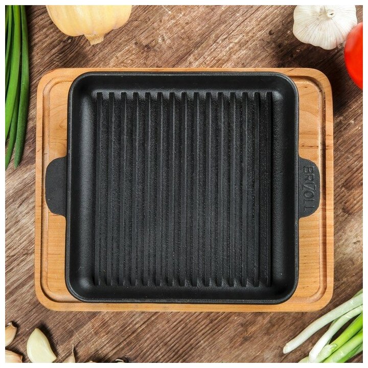 Сковородки Сковорода чугунная квадратная гриль "Хорека" с подставкой, 180х180х25 мм, ТМ Brizoll