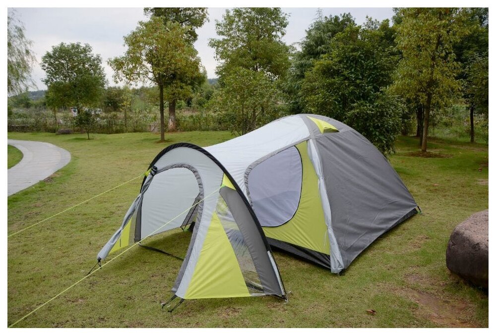 Лучшие цены. Комфортабельная кемпинговая палатка с просторным тамбуром и двумя входными проемами, что позволяет удобно разместить вещи, обеспечивает хорошую вентиляцию и создает дополнительный комфорт во время путешествия. Прекрасно подходит для семейного отдыха на природе. Тент: 100% полиэстер, 3000 мм Внутренняя палатка: 100% дышащий полиэстер 170Т Каркас: фиберглассовые трубки 7.9 мм Дно: Влагонепроницаемый армированный полиэтилен Количество входов: 1 Полный вес: 4.5 кг Количество тамбуров: 1 Размер спального места. Магазины в вашем городе.