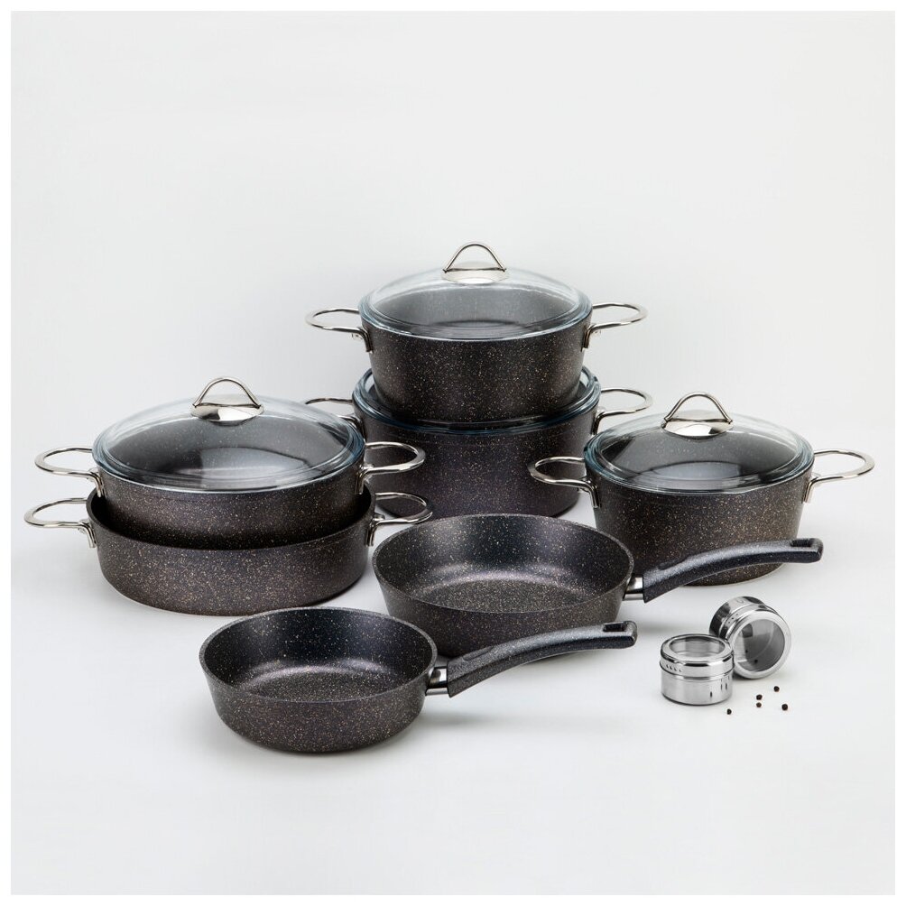 Лучшие цены. Кастрюля - сотейник со стекл. крышкой и антипригар. покрытием, серия granite, 22х10,5см, 3,3л Agness (952-036). Магазины в вашем городе.