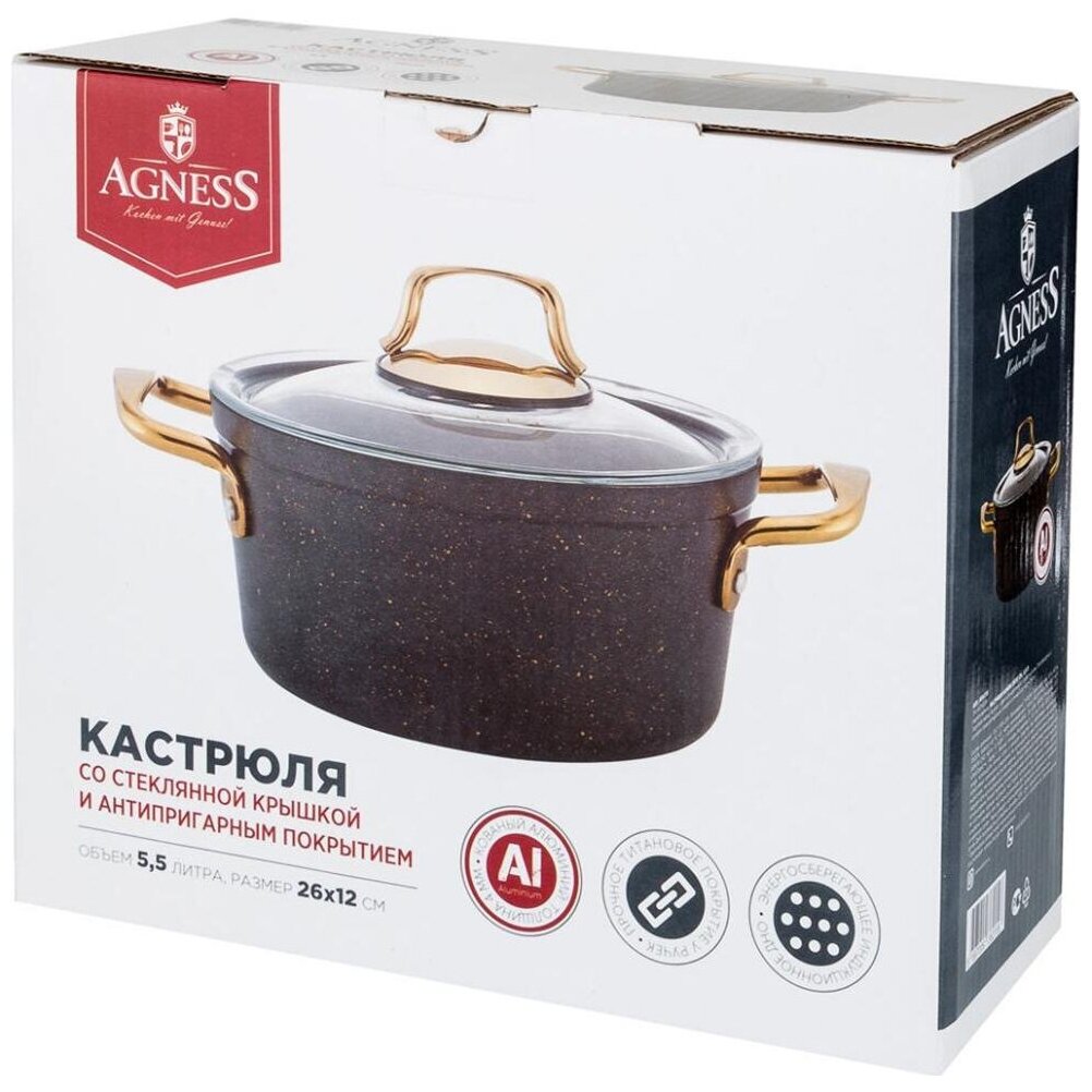 Кастрюля Кастрюля agness премиум черное золото 26x12 см, 5.5 л антипригарное покрытие, индукционное дно 936-215
