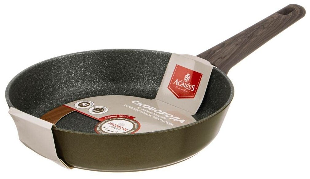 Сковорода для индукционной плиты AGNESS "SPICY" С "мраморным" антипригарным покрытием 28 х 5.8 см оливковый