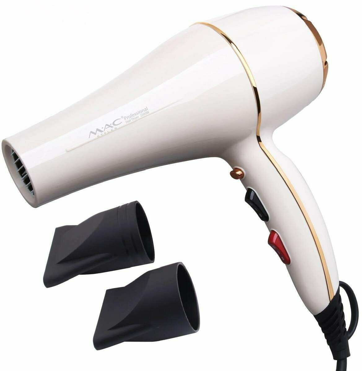 Фены и приборы для укладки Фен для волос, профессиональный фен, 2 насадки, холодный воздух, 2200вт. белый