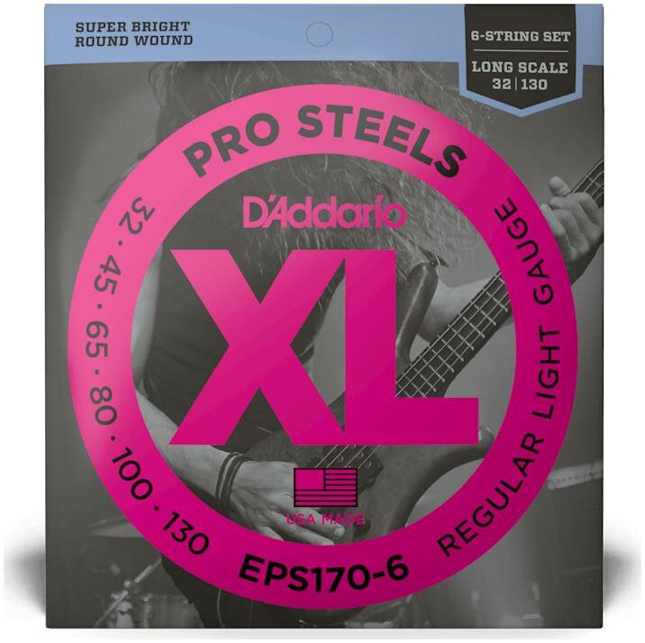 Струны D'ADDARIO EPS170-6 PROSTEELS 6-STRING BASS LIGHT 30-130 струны для 6-струнной бас-гитары, мензура 34-36,25', сталь, 30-130