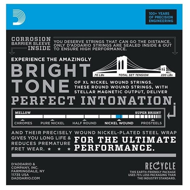 Струны D'Addario 10-74 XL Nickel Wound EXL140-8