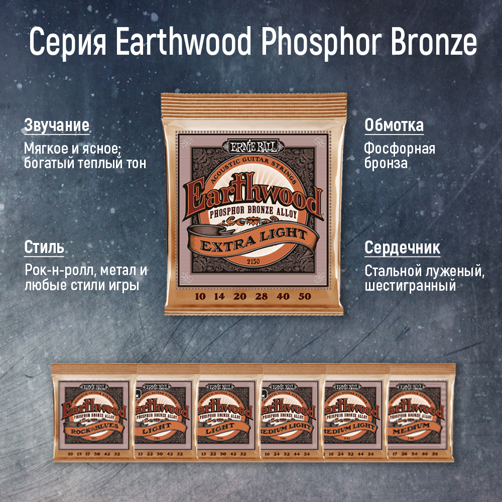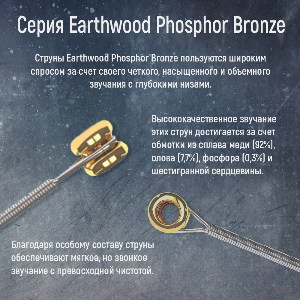 Струны для акустической гитары, комплект из 6 струн, фосфорная бронза, Ernie Ball 2144 Earthwood 13-56