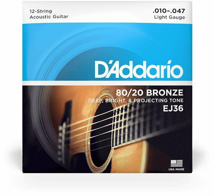 Струны D'Addario EJ36 струны для 12-струнной гитары, бронза 80/20, Light 10-47