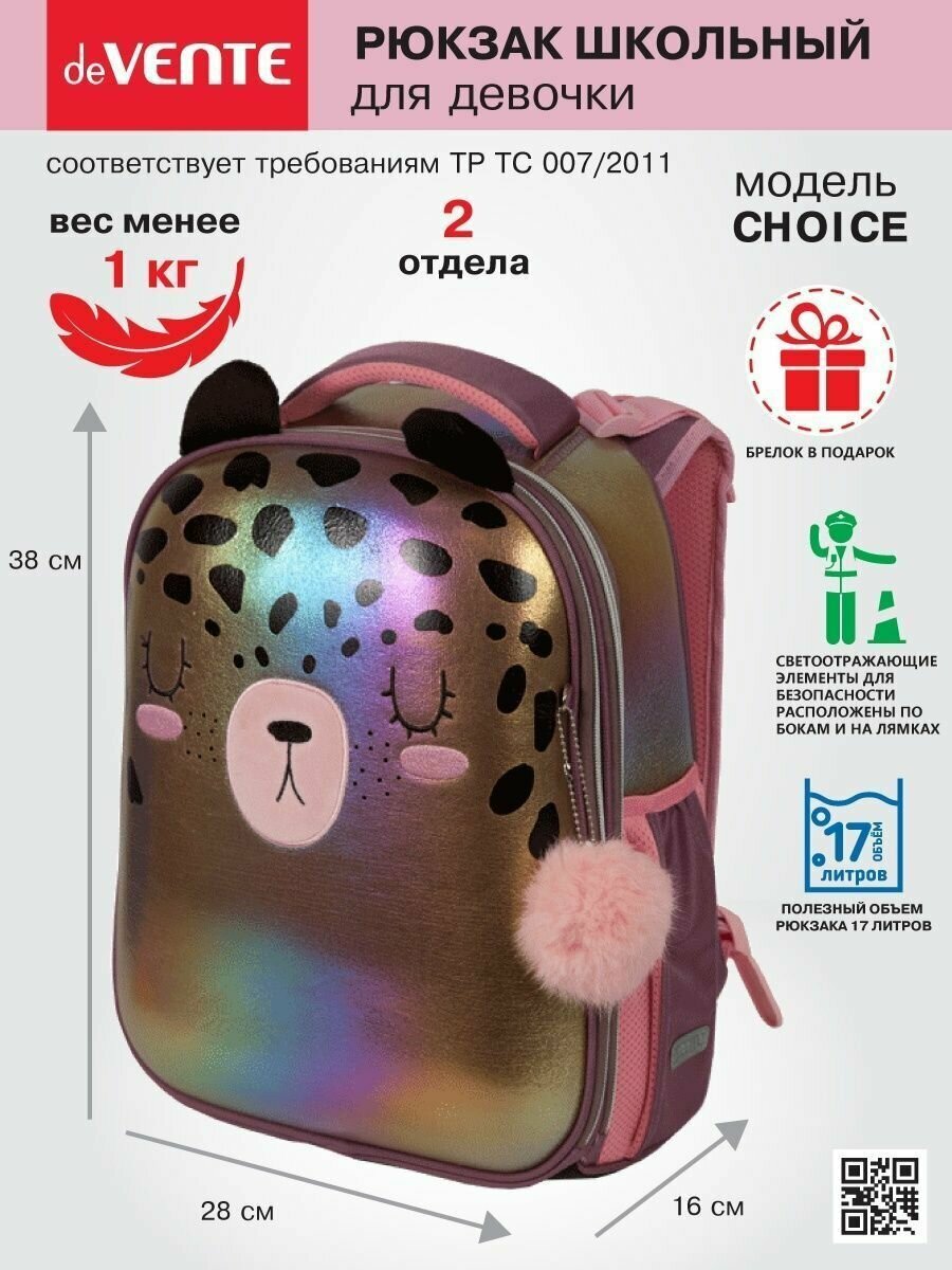 Школьный рюкзак (ранец) Ранец школьный deVENTE. Choice. Lucky Leo, 38*28*16 см 2 отд, с брелоком 7033212