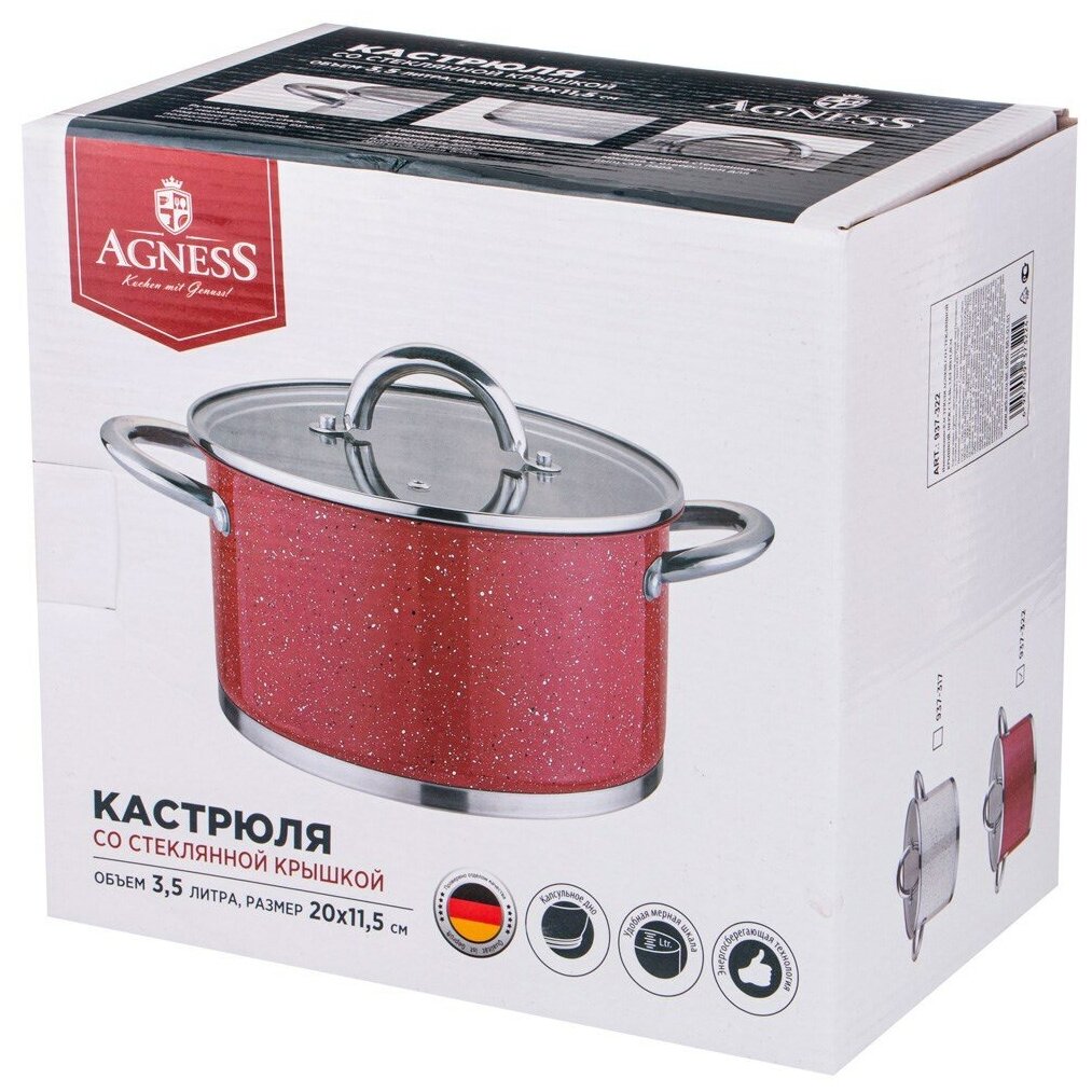 Лучшие цены. Кастрюля AGNESS со стеклянной крышкой, нерж. сталь, серия RED MARBLE 3,5Л 20Х11,5СМ Бренд AGNESS представляет кастрюли из нержавеющей стали серии Red Marble. Изюминка этой серии - это внешнее жаропрочное покрытие выполненное под красный мрамор и обеспечивающее высокую износостойкость посуды. Энергосберегающее капсульное дно обеспечивает быстрый и равномерный нагрев посуды. Магазины в вашем городе.