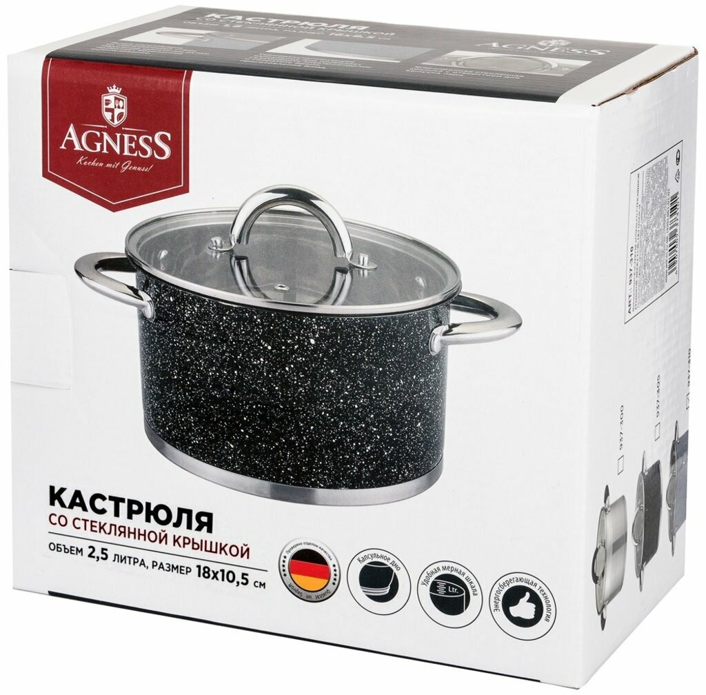 Кастрюля Кастрюля Agness со Стеклянной Крышкой Нержсталь Серия Монблан 2,5Л 18Х105СМ Кор=6шт 937-311 .