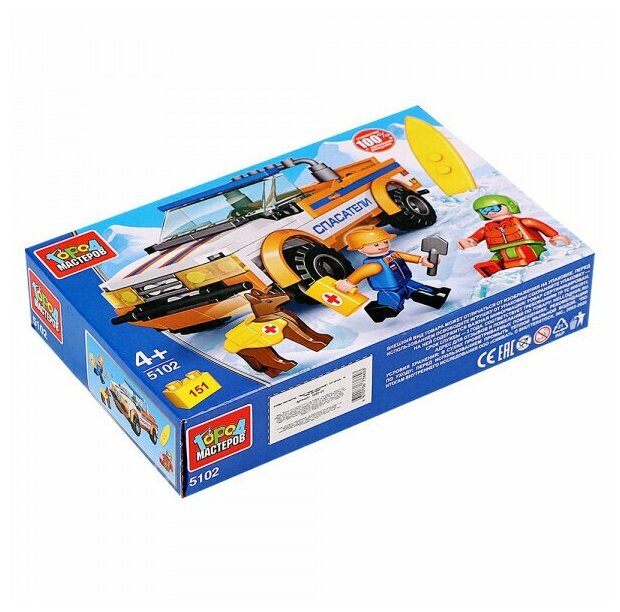 Лучшие цены. Конструктор «Пикап горных спасателей» ТМ «Город мастеров» понравится маленьким героям. Особенности и комплектация: - 151 деталь - 3 фигурки - совместим с моделями конструкторов мировых брендов - все детали легко и плотно соединяются между собой С помощью этого занимательного конструктора ваш ребёнок может собрать реалистичную модель спасательной машины и вместе с храбрым спасателем и его верной собакой спасти сноубордиста. Магазины в вашем городе.
