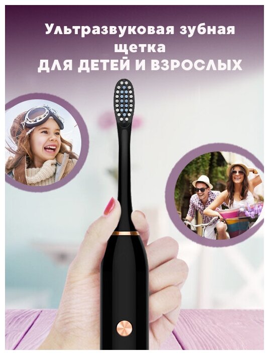 Электрическая ультразвуковая зубная щетка / 4 насадки / Зубная щетка // SONIC TOOTHBRUSH X7 черная