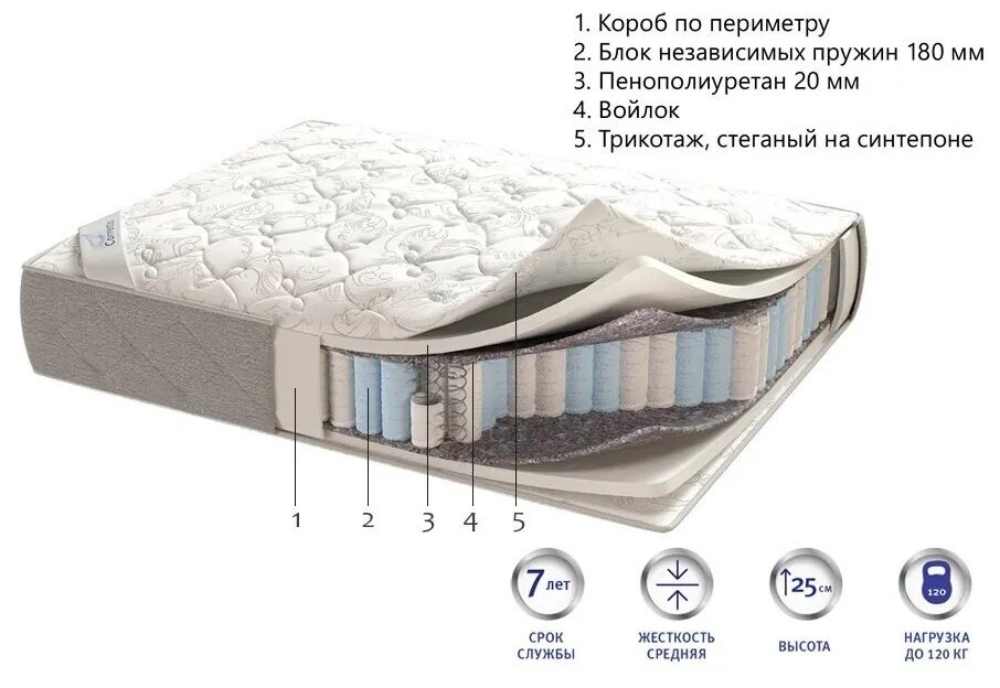 | Жесткость | средняя / высокая (3/5), двусторонний |