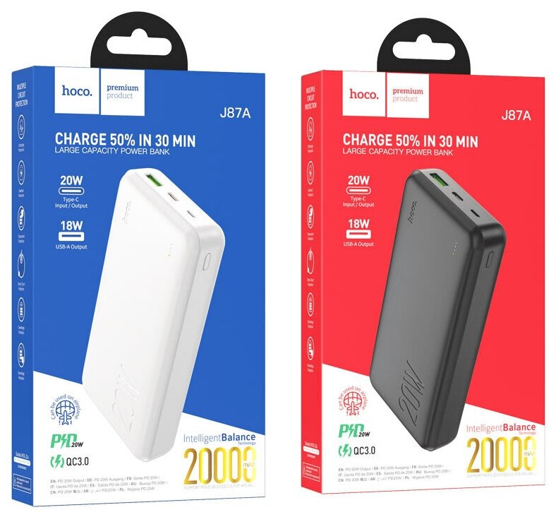 Лучшие цены. J87A Tacker, портативный аккумулятор, 20000mAh, вход Micro-USB / Type-C 18W, выход USB 18W и Type-C 20W, LED индикатор, поддержка протоколов быстрой зарядки 1. Емкость: 20000mAh 74Wh. Номинальная емкость: 11800mAh. 2. Вход Micro-USB – 18W (для QC3.0, для FCP, для AFC). Type-C – 18W (для PD3.0, для QC3.0, для FCP, для AFC). 3. Выход: USB-A – 18W (для QC3.0, для FCP, для AFC). Type-C – 20W (для PD3.0, для QC3.0, для FCP, для AFC). Общий выход: 5V / 3A. 4. Индикатор: светодиодный индикатор. 5. Магазины в вашем городе.